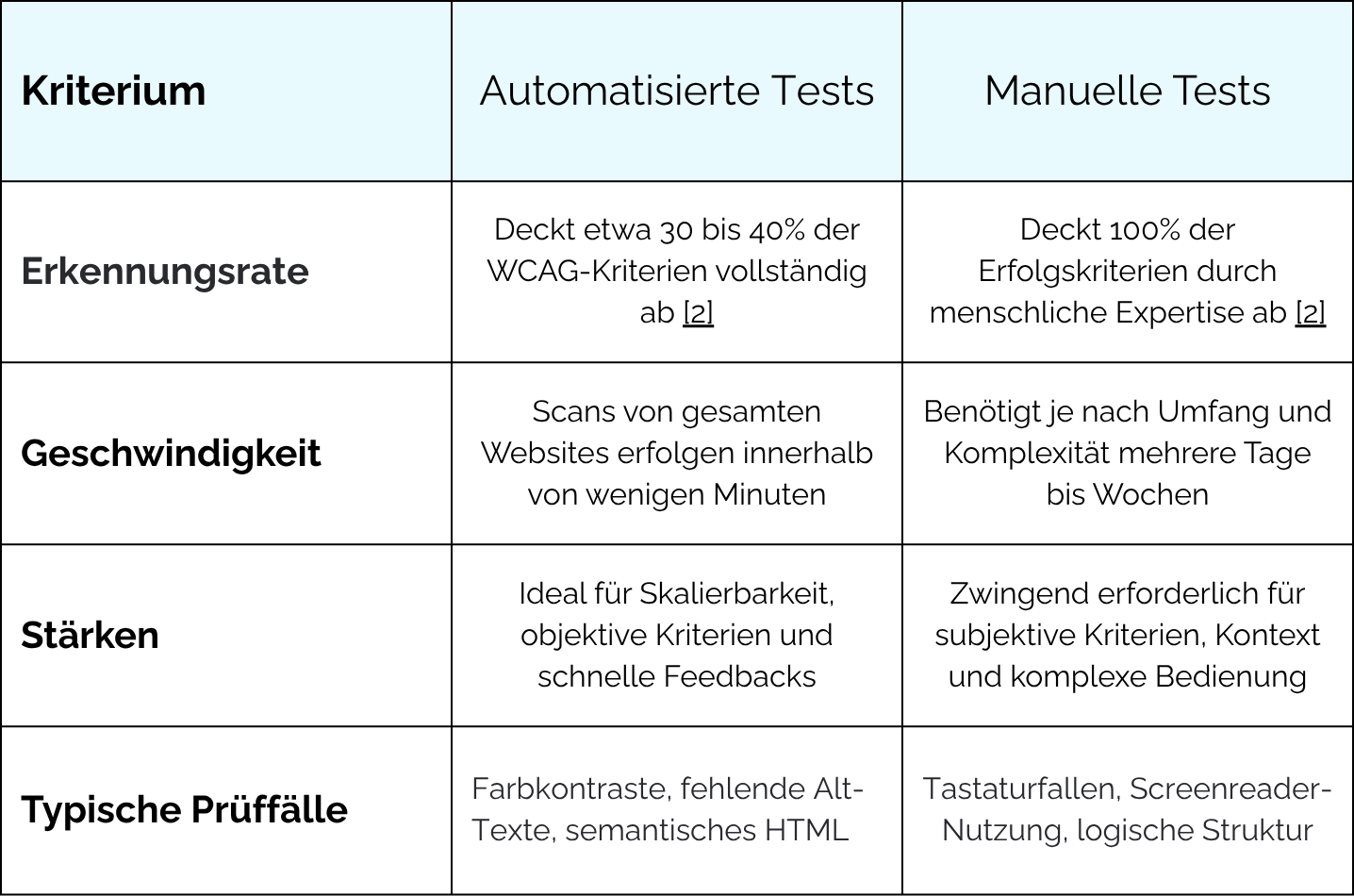 Ein effektives Accessibility Testing erfordert eine Kombination aus automatisierten Tools und manueller Fachexpertise. Automatisierte Tests scannen den Quellcode schnell auf eindeutige WCAG-Verstöße wie fehlende Alt-Texte, können aber komplexe Interaktionen nicht vollständig validieren. Daher bleiben manuelle Prüfungen mit Screenreadern und reiner Tastaturnavigation unerlässlich, um die vollständige Bandbreite der Barrierefreiheit sicherzustellen.